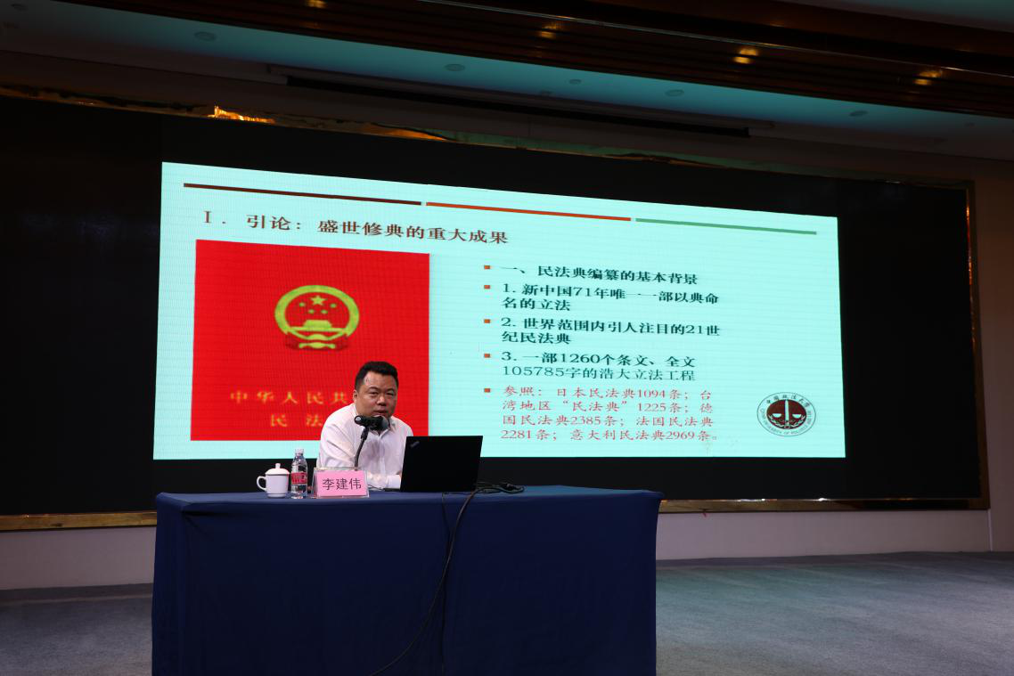 10月15日下午,江门市法学会、鹤山市委政法委、鹤山市工商联、鹤山市法学会、鹤山市总商会联合举办“以法兴企”法治文化沙龙讲座,邀请中国政法大学教授李建伟作题为《民法典下的营商环境与民营企业家权益保护》的专题讲座,我院班子成员带队参加。