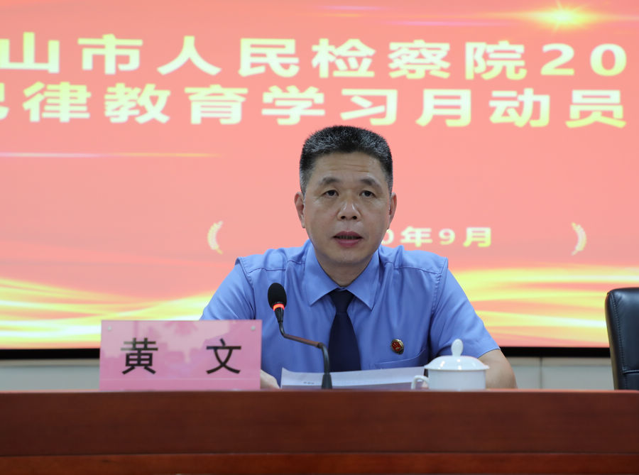 近日,我院召开2020年纪律教育学习月动员大会,会议由院党组成员、纪检组长冯伟清同志主持。会上,我院党组书记、检察长黄文就认真开展“严守政治纪律,践行‘两个维护’”为主题的纪律教育学习月活动进行动员部署,并作专题辅导报告。