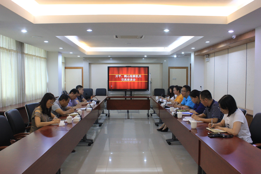 6 月5日 上午,开平市人民检察院党组成员、纪检组长吕诗耀一行4人到我院就纪检监察工作进行交流学习,并与我院计财科就省院督察内容展开了深入的交流和讨论。