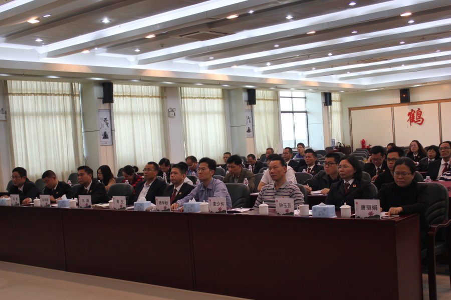 4月9日下午,省法学会举行2018年“百名法学家百场报告会”暨“南粤法治报告会”第四十四讲。社科院法学所研究院、研究室副主任翟国强作题为“学习宪法及修正案,加强宪法实施及监督”的报告。我市分会场设在我院九楼会议室,市委政法委和司法局相关领导、我院领导、专职检委和各内设机构负责人通过视频会议形式参加了报告会。